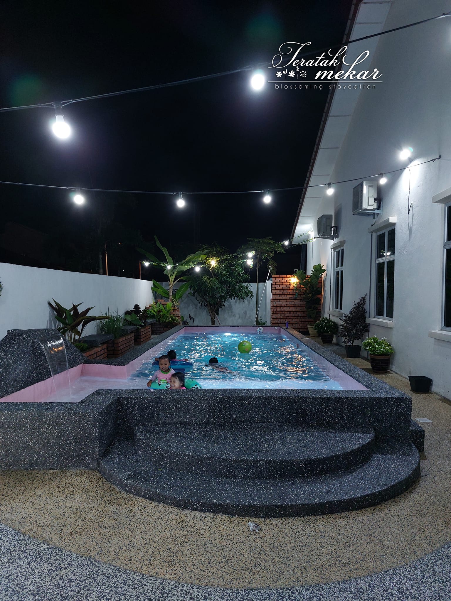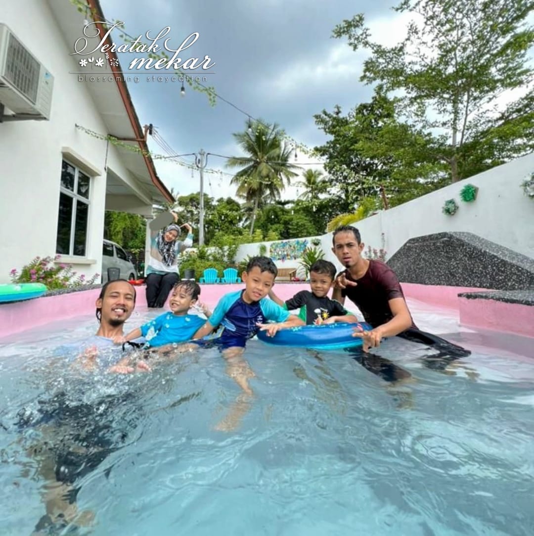 Experience the enchanting Teratak Mekar House nestled in the heart of Jeram, Selangor. Our guest house boasts a truly unique feature – a vibrant pink swimming pool, making it the one and only of its kind in Malaysia. But fear not, the water remains crystal clear and refreshing with a soothing blue hue.